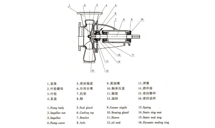 冷 却冲洗液的压力为0.1~0.3MPa,流量为0.63m3/h,流量过小会影响密封的使用寿命。